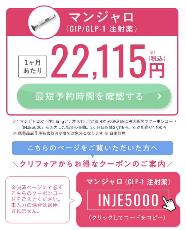 本記事はGLP-1ダイエットに関する一般的な情報を提供するものであり、特定の医療機関や製品を推奨するものではありません。GLP-1製剤は医薬品であり、服用には医師の診察と処方が必須です。治療を開始する際は、必ず医師と十分に相談し、個人の健康状態や体質に応じた適切なアドバイスを受けるようにしてください。効果や副作用には個人差があり、全ての情報が全ての人に当てはまるわけではありません。本記事の情報に基づいて生じたいかなる損害についても、当方では一切の責任を負いかねます。最新の情報や正確な料金については、各医療機関の公式サイトをご確認ください。