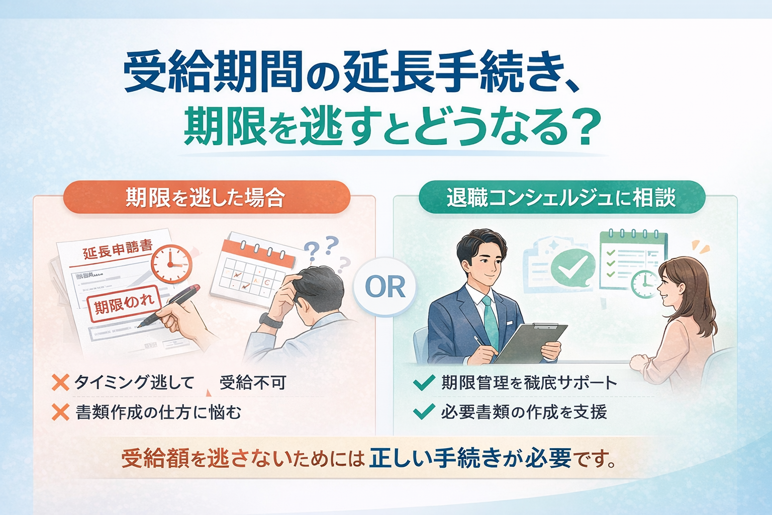 退職コンシェルジュなら、受給期間延長の手続きを完全サポート!