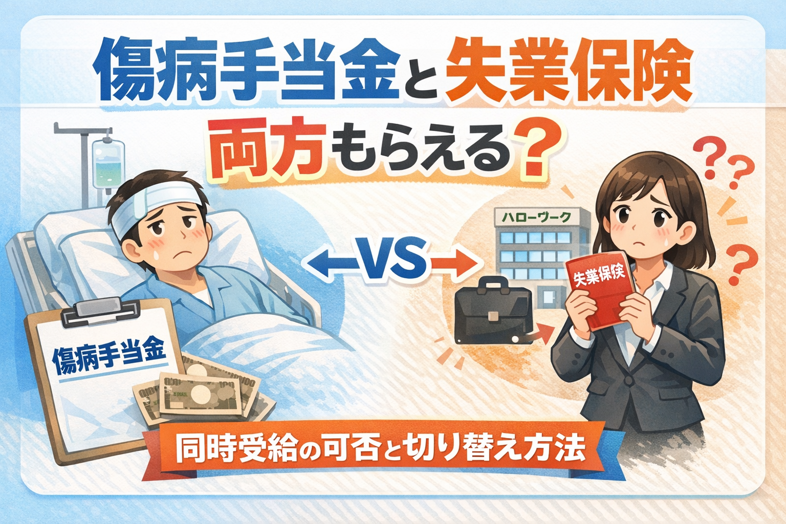 どちらも心強いセーフティネットですが、「両方受け取れるのか」「どうやって切り替えるのか」といった疑問を持つ方は少なくありません。