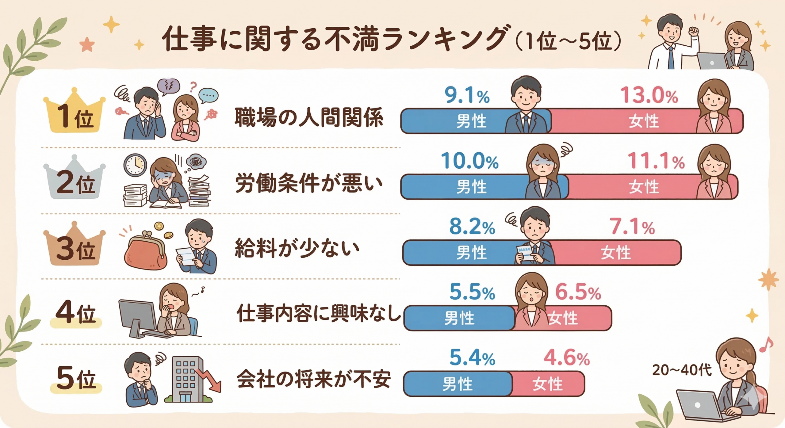 A.厚生労働省の雇用動向調査などを見ると、退職理由の上位は常に似たような項目が並びます。