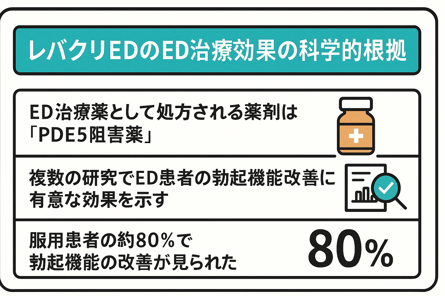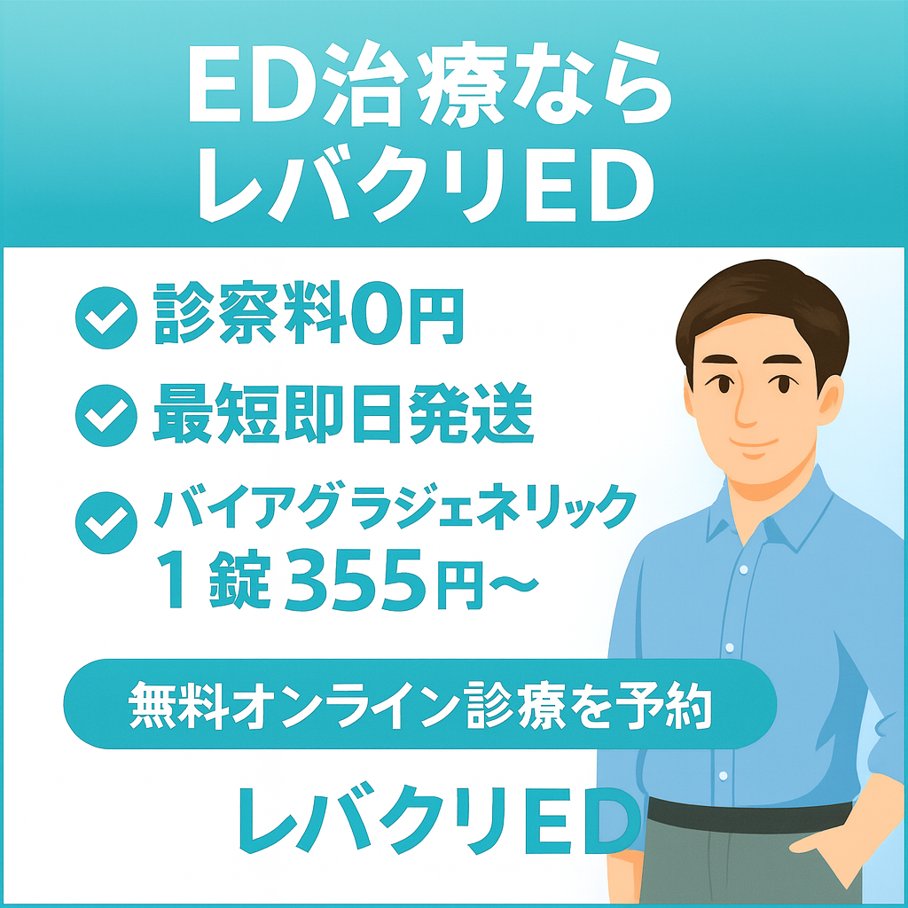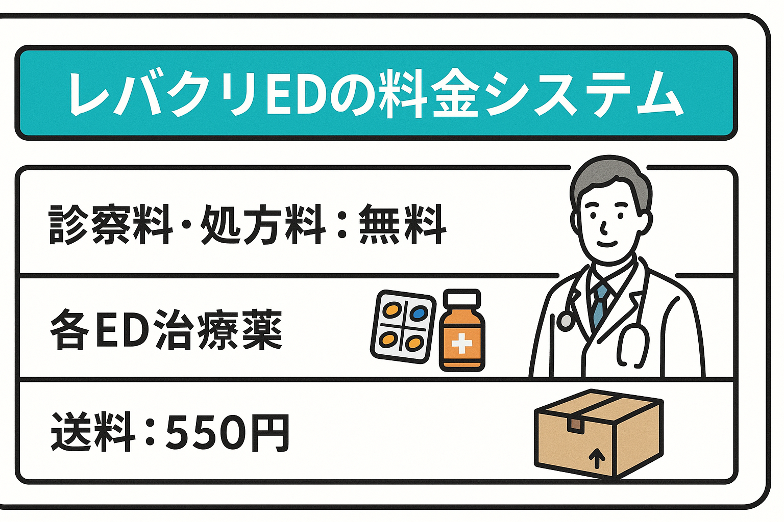 レバクリEDの強み: 何よりも「診察料無料」と「ジェネリックの安さ」が際立ちます。費用を抑えてED治療を始めたい方に最適です。