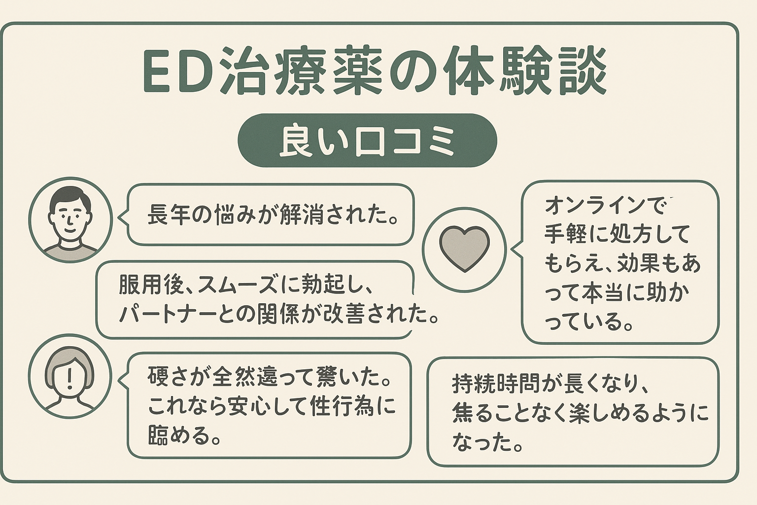 レバクリEDは、ED治療のオンラインクリニックとして、多くの患者に利用されています。実際に利用した人々の声は、これから治療を検討する上で非常に参考になります。ここでは、レバクリEDに関するさまざまな口コミを、良い点と気になる点の両面から深掘りしていきます。