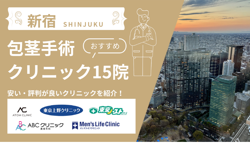 新宿で包茎手術ができるおすすめのクリニック15院を比較しました。費用が比較的安い・評判や口コミが良い医院を紹介しているだけでなく、包茎に関する基礎知識もまとめているので、包茎手術を検討している方は必見です。