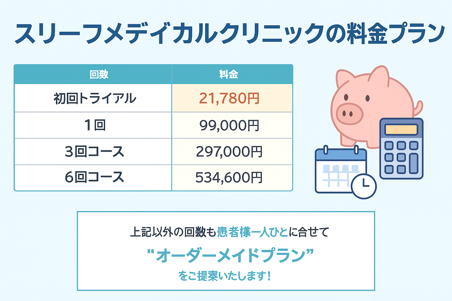 モニター価格や初回限定プランは、クリニックや時期によって内容が変動する可能性があるため、最新情報は必ず公式サイトを確認するか、無料カウンセリングで直接問い合わせることをお勧めします。