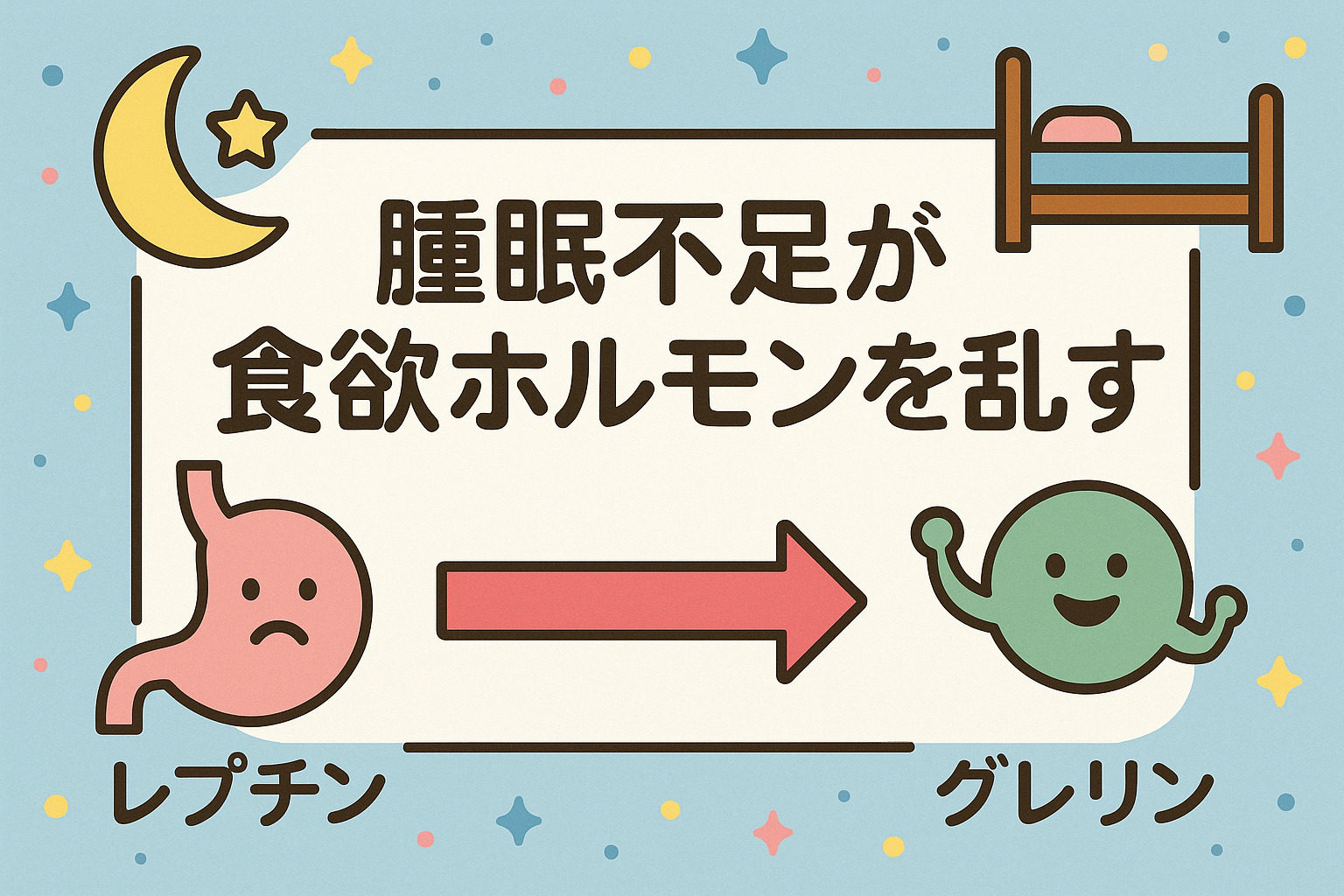 - レプチン:満腹を感じるホルモン。睡眠不足で分泌が減少