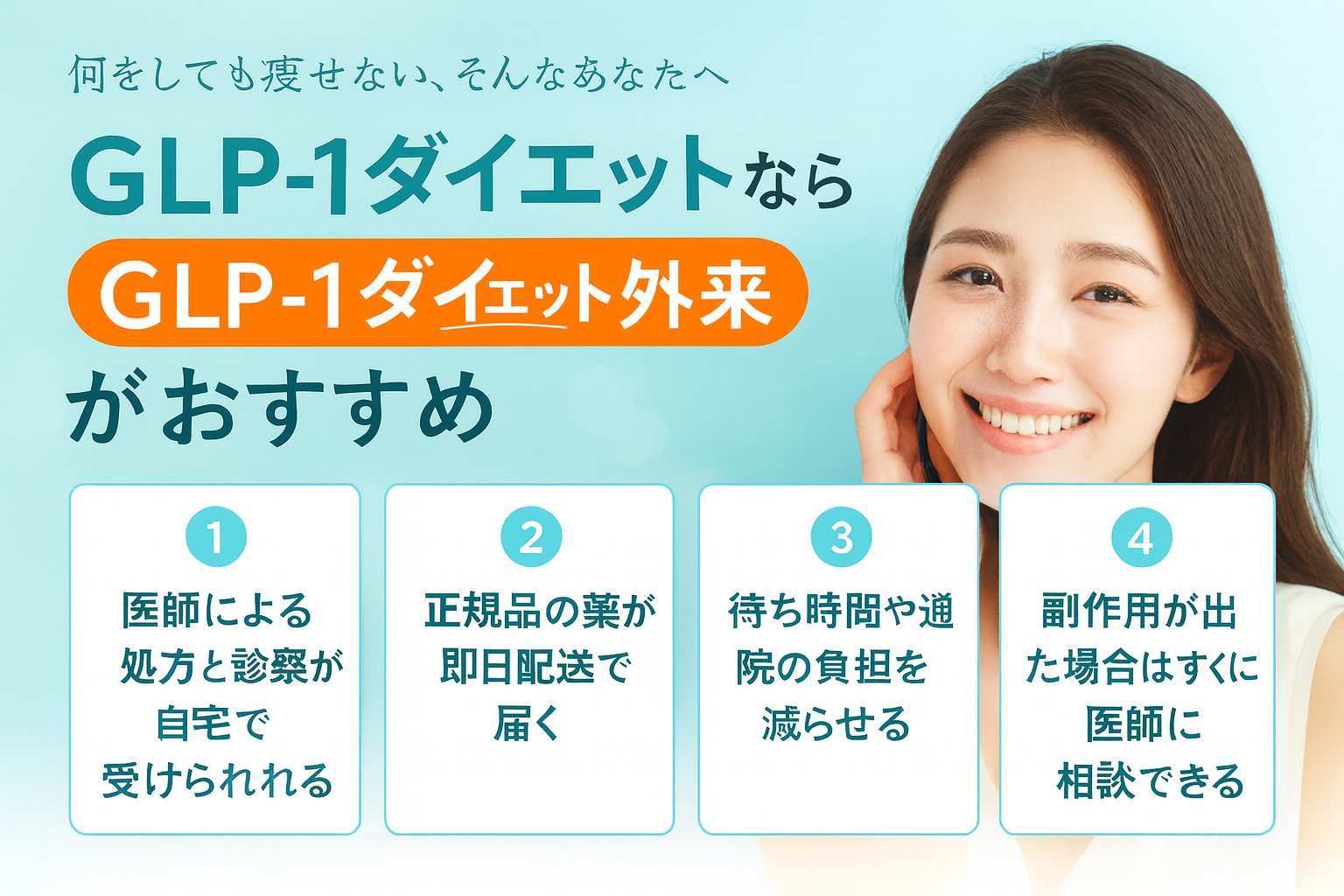「食欲が抑えられない」「何をしても痩せない」――そんな人は、GLP-1ダイエット外来で、ホルモンの働きを整える医療的サポートを受けるのがおすすめ。